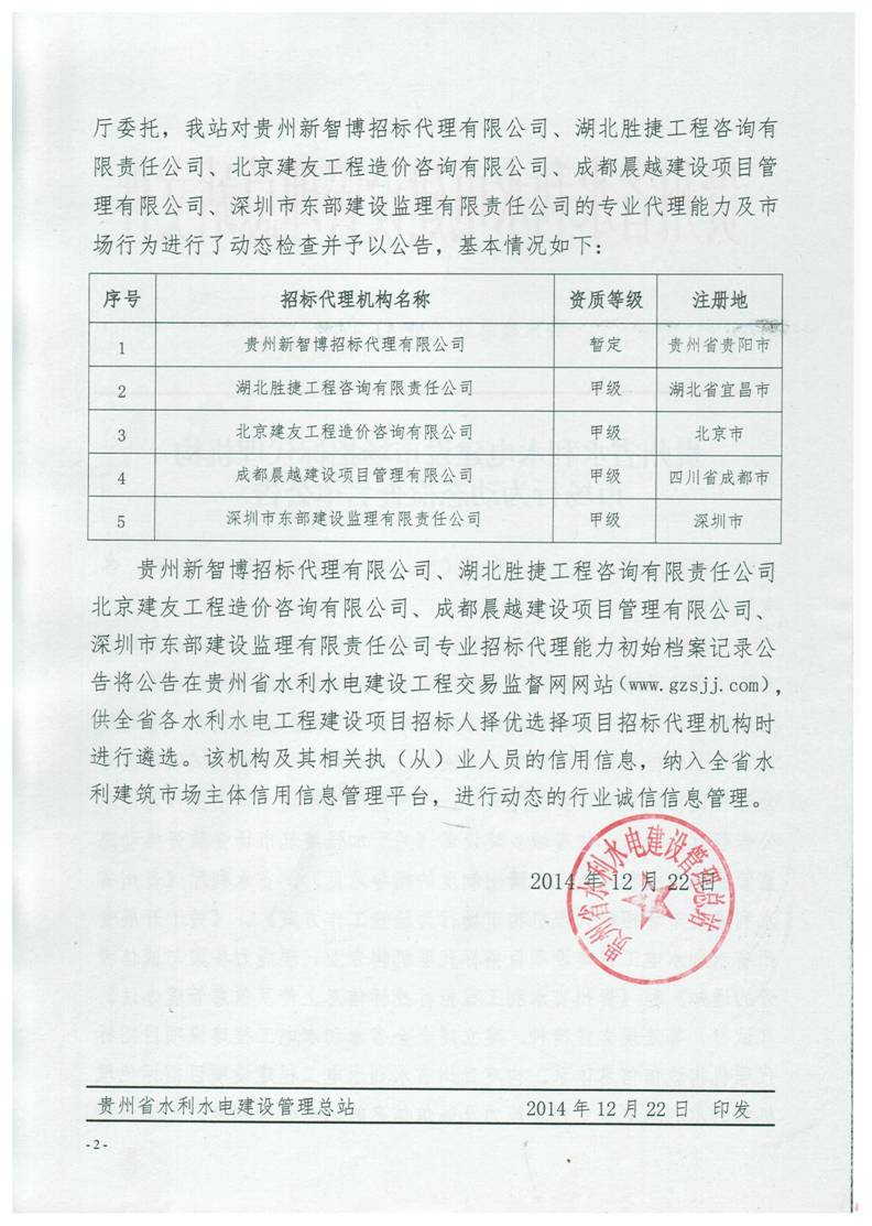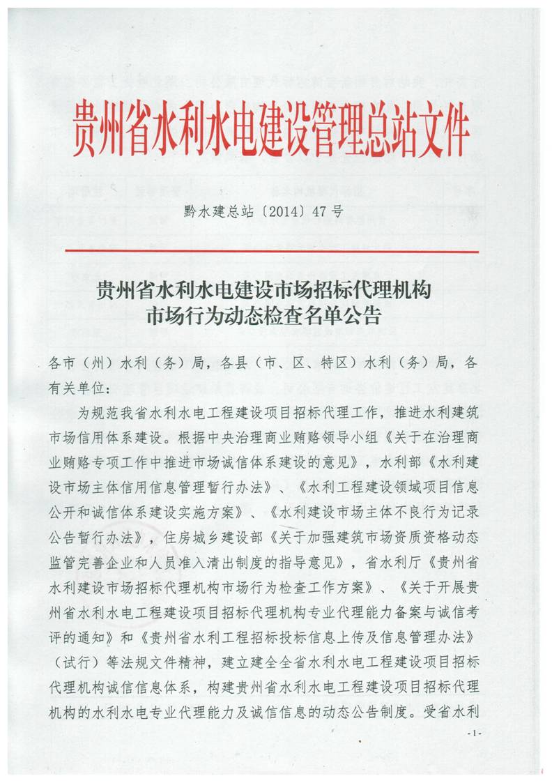 贵州省水利水电建设市场招标代理机构市场行为动态检查名单公告