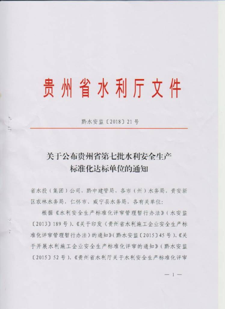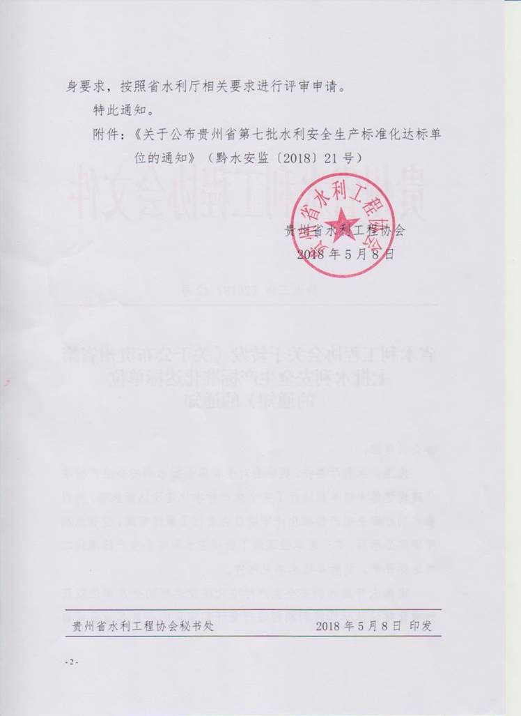 省水利工程协会关于转发《关于公布贵州省第七批水利安全生产标准化达标单位的通知》的通知