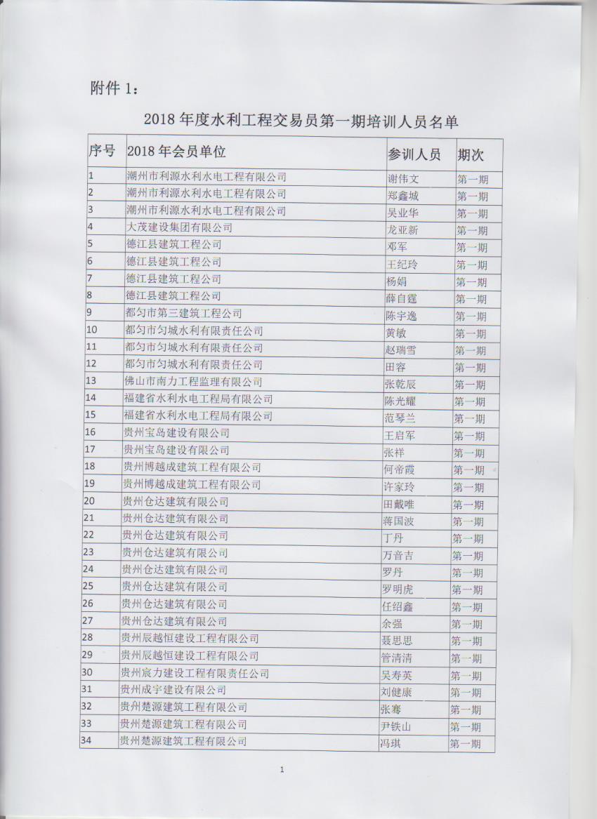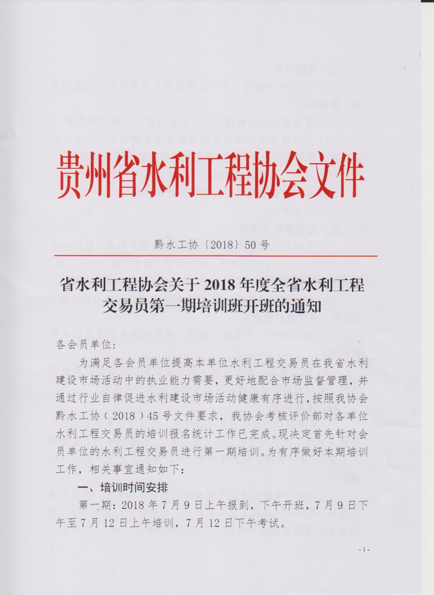 省水利工程协会关于2018年度全省水利工程交易员第一期培训班开班的通知