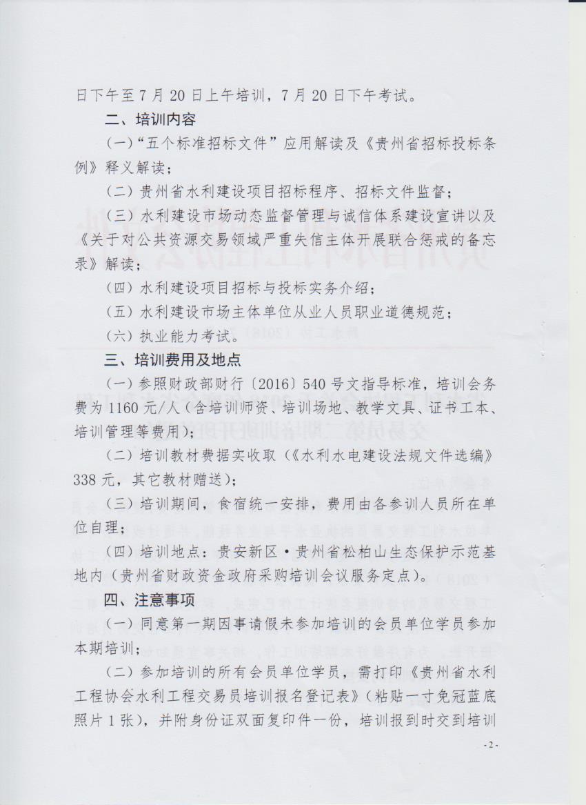 省水利工程协会关于2018年度全省水利工程交易员第二期培训开班的通知