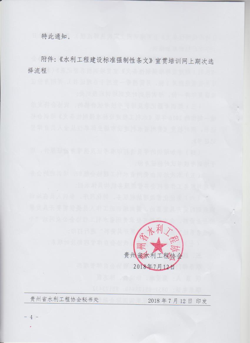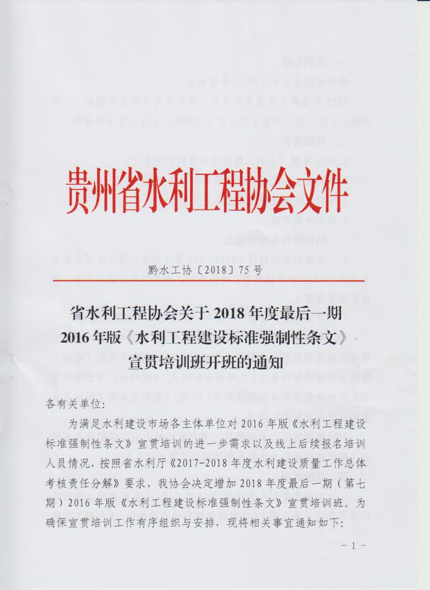 省水利工程协会关于2018年度最后一期2016版《水利工程建设标准强制性条文》宣贯培训班开班的通知