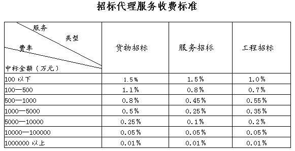 注:1、按本表费率计算的收费为招标代理服务全过程的收费基准价格,单独提供编制招标文件(有标底的含标底)服务的,可按规定标准的30%计收。