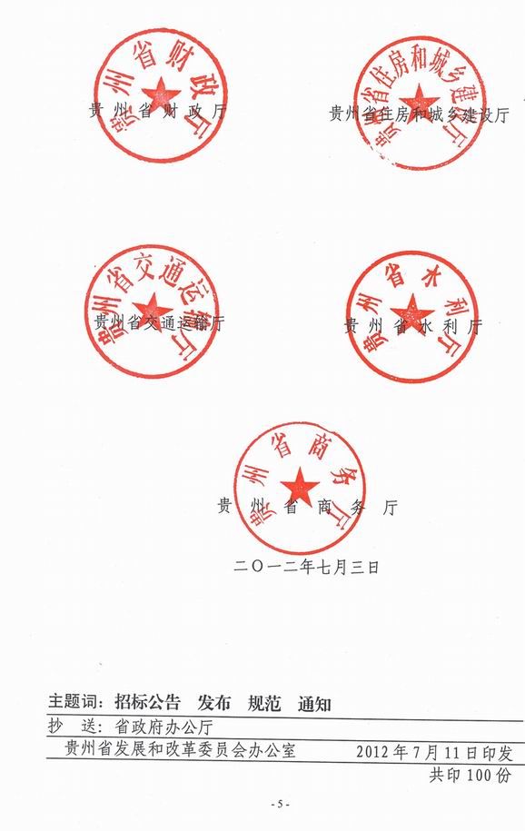关于《印发贵州省国有资金投资工程建设项目施工招标简易程序规定(试行)》的通知